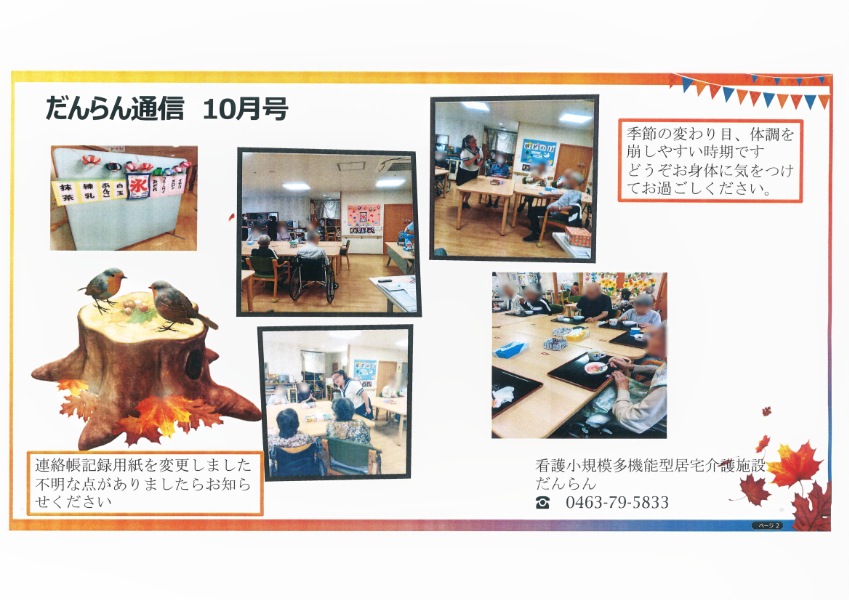 看護小規模多機能型居宅介護施設 だんらんが発行している『だんらん通信』秋号をアップいたしました。