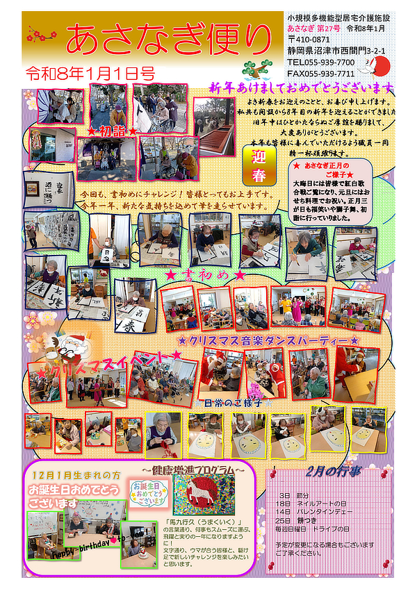 小規模多機能型居宅介護施設 あさなぎが発行している『あさなぎ便り』1月号をアップいたしました。