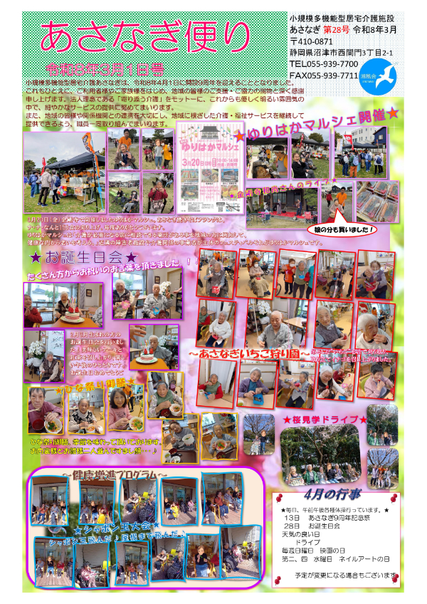 小規模多機能型居宅介護施設 あさなぎが発行している『あさなぎ便り』3月号をアップいたしました。